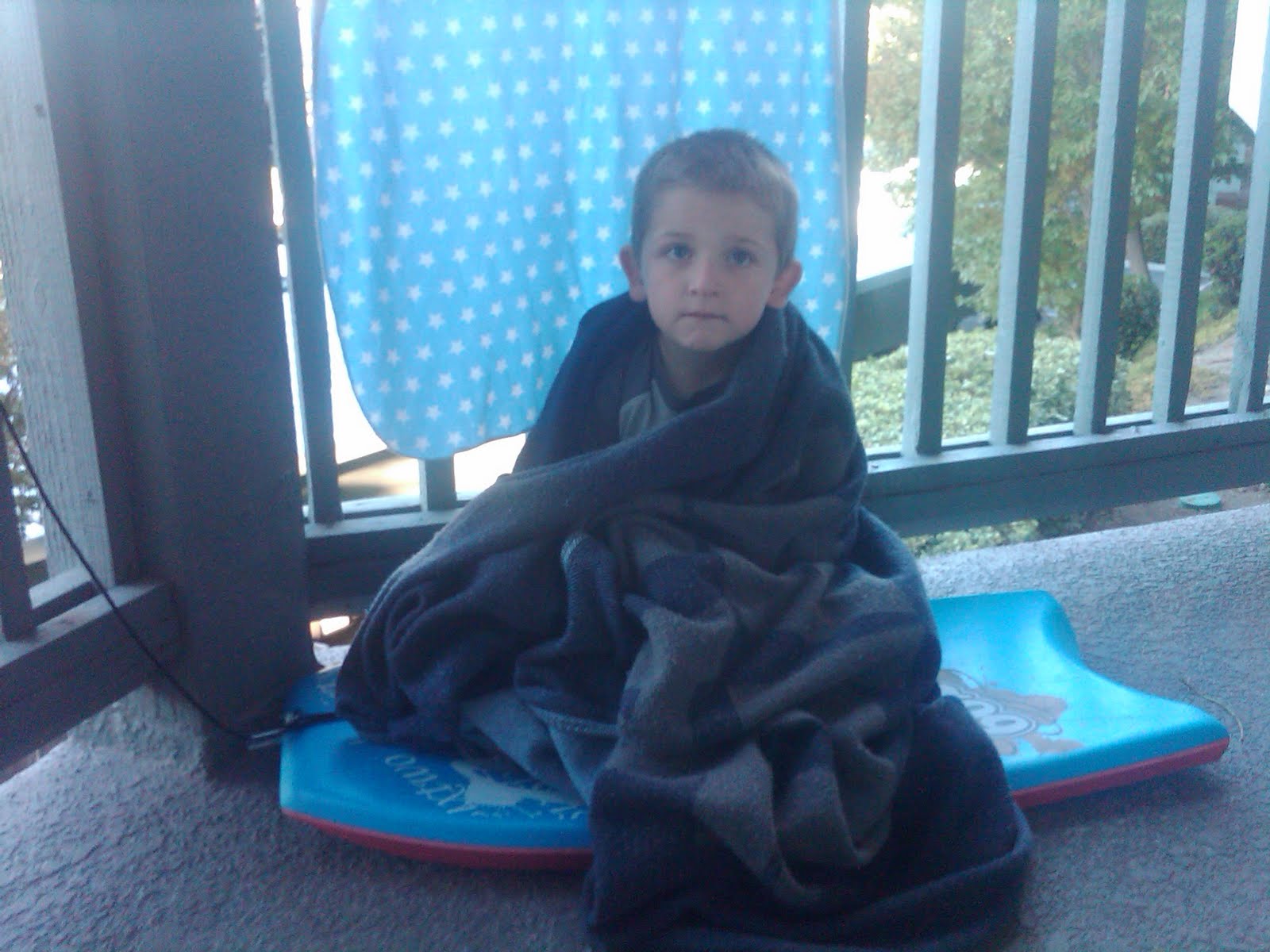 When I asked him what he was doing outside in the cold, he replied, "Just getting warmer mom." Ummmm...note to self buddy, you get warmer INSIDE the house, lol!