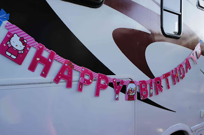 So instead of having a big birthday party at home for our Bea, we brought the Hello Kitty party to camping! :0)