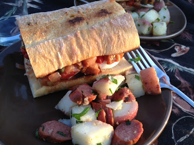 Specifically, for date night, I made my mom the most delicious Italian picnic! We had "Caponata Sandwiches", with an olive-oil based potato salad (made with basil from MYYYY garden, LOL!)...